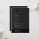 Celebre o amor e o código com este convite de casamento exclusivo para desenvolvedores, programadores e tecnologia! Perfeito para casais programadores, este design criativo apresenta referências espirituosas de codificação e uma vibe geek divertida que vai impressionar seus convidados. Totalmente personalizável para incluir seus nomes, data e detalhes do local, este modelo é ideal para casais experientes em tecnologia que desejam adicionar um toque pessoal ao seu grande dia. Faça seu casamento inesquecível com este convite único para programadores e desenvolvedores!
