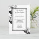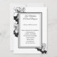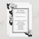 Este convite de casamento é mostrado em um layout clássico em um fundo branco com um layout moderno com um impressão floral preto e branco. O texto está em preto. Personalize este item, retirando o texto do exemplo e colocando suas informações nele. Imagem de ações.