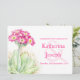 Bonita convite de casamento floral da Primula alpina scotica. Sombreado em rosa, verde, marrom e branco. Edite este convite com suas próprias palavras. Design único e pintura botânica de cor aquática original de Sarah Trett.