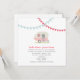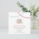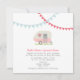 Um convite do casamento que caracteriza uma ilustração de um reboque cor-de-rosa do vintage estacionou na grama. O reboque tem uma caixa de janela enchida com as flores coloridas. Estamenha azul e vermelha na parte superior. Personalize o texto com detalhes de sua ocasião. Artigos de harmonização Look for no Paperie de Jill.