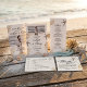 Parte da coleção The Ivory Coast, este convite de casamento refinado é projetado com uma sensibilidade minimalista costeira e um senso de elegância discreto. Detalhes delicados de conchas marinhas ancoram sutilmente o layout, combinados com tipografia limpa e espaçamento generoso para um visual que se sente moderno e atemporal.