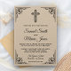 Incêndio aos seus convidados com este convite de casamento cristão estilo vintage, com uma elegante fronteira de ornamentado preto e uma cruz decorada contra um fundo Kraft rústico. Basta adicionar os detalhes do seu evento neste modelo fácil de usar para torná-lo um convite de tipo único. Sacudir a placa para revelar um belo padrão na parte traseira da placa.