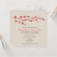 Um convite do casamento que caracteriza uma aguarela inspirou a ilustração de um ramo das flores de cerejeira na parte superior. O fundo é uma máscara profunda fora do branco. Personalize o texto com detalhes de sua ocasião. O fraseio é dos noivos junto com seus pais. Artigos de harmonização Look for no Paperie de Jill.