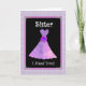 Irmã, Preciso de Você - Uma maneira tão fofa de convidar sua irmã para fazer parte do seu casamento! Lindo vestido roxo com um buquê de flores, rodeado por uma borda xadrez gingham. Adorável! Para ver rapidamente a seleção completa deste design, digite na caixa de pesquisa: oobride casamento azul xadrez gingham convite