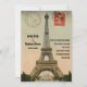 Este convite bonito do casamento caracteriza uma imagem de uns 1909) cartão franceses do vintage (da torre Eiffel em Paris, e um selo cancelado.