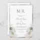 Botânica branca elegante com flores de aquarela. Adicione a noiva e as iniciais do noivo ao monograma deste belo convite. Belo falso quadro de prata embeleja este belo convite de casamento simples e chique. Simplesmente refinado.