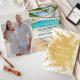 Incomode seus convidados com este elegante convite de casamento de praia dobrada com tipografia moderna contra um belo fundo de praia. Basta adicionar os detalhes do seu evento a este modelo fácil de usar e adorar este cartão com a sua foto favorita para que ele seja um convite personalizado único.