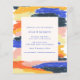 Convite para Casamento de Abstrato de Artsy Retroativo em Azul, Laranja, Rosa e Amarelo