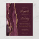 A borda esquerda deste elegante convite de casamento moderno apresenta uma cor-d-água vermelha borrifada com uma falsa brilha dourada. O texto personalizável combina manuscritos dourados, copperplate e fontes itálicas em fundo burgundy. O lado inverso apresenta uma burgundy e uma design de agata dourada.