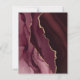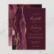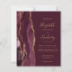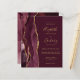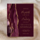 A borda esquerda deste elegante convite de casamento moderno apresenta uma cor-d-água vermelha borrifada com uma falsa brilha dourada. O texto personalizável combina manuscritos dourados, copperplate e fontes itálicas em fundo burgundy. O lado inverso apresenta uma burgundy e uma design de agata dourada.