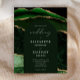 Este design moderno apresenta uma forma verde escura de arco sobre um fundo de corante verde aquoso agado com brilho dourado. A palavra "casamento" aparece em um roteiro branco elegante. Personalize o convite com os nomes da noiva e do noivo numa combinação de tipografia serif e sans serif e os detalhes do casamento em itálico.
