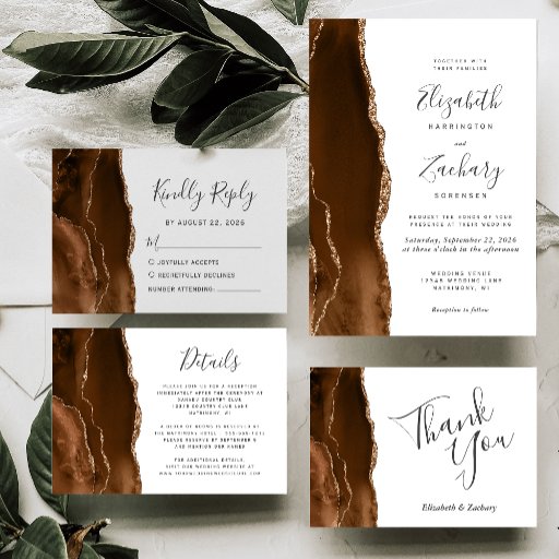 Convite de casamento de Agate Dourado Mocha Brown