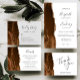 A borda esquerda deste elegante convite de casamento moderno apresenta uma mocha castanha de aquarela agata bordada com falsa brilho dourado. O texto personalizável combina a escrita manual de cinzas de carvão, as fontes em copperplate e itálico em um fundo branco. O verso apresenta um design de agata marrom e dourado correspondente.