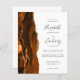 A borda esquerda deste elegante convite de casamento moderno apresenta uma cor de água laranja queimada, aparada com falsa brilho dourado. O texto personalizável combina a escrita manual de cinzas de carvão, as fontes copperplate e itálico. O verso é branco sólido. NOTA: os envelopes não são incluídos automaticamente nestes convites de orçamento, portanto lembre-se de escolher a opção "envelopes brancos"!
