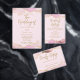 Um convite de casamento com fontes douradas, cor-de-rosa e sotaques dourados.