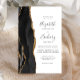 A borda esquerda deste elegante convite de casamento moderno apresenta uma coloração aquosa preta, borda agitada, aparada com falso brilho dourado. O texto personalizável combina manuscrito, copperplate e fontes itálicas em cinzas de carvão em um fundo branco. O design de agata preto e dourado é repetido no verso.
