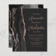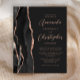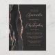 A borda esquerda deste elegante convite de casamento moderno apresenta uma coloração aquosa preta, borda agitada, aparada com falso rosa dourado. O texto personalizável combina o script cor-de-rosa rosa e as fontes sans serif em um plano de fundo preto de slate. O verso apresenta um design de agate preto e rosa dourado correspondente.