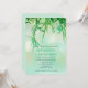 Perfeito para o seu primavera ou casamento no inverno! Um convite de casamento maravilhoso com duas fontes diferentes em três cores. verde florestal, verde-gainsboro e azul-de-aço. sobre um fundo de orvalho cai sobre agulhas de cedro e boque.