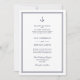 Convite de casamento para âncora marinho náutica azul e branco com pais de noiva e noivo nomeados em introdução como anfitriões. Branco com borda azul de marinho duplo e ilustração de âncora no centro superior, texto de bloco e script em azul de marinho e azul de marinho com faixas brancas finas atrás. Casamento náutico clássico.