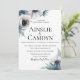 Tijolo azul de aquarela e flores e folhas anêmonas, convite de casamento botânico. Personalizar texto, estilo de fonte, cor e tamanho.