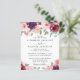 Convite de casamento elegante e econômico com buquês de cor d'água de florais vermelho, rosa-pinto-claro e roxo de ameixa com folha verde-clara e na moda simples tipografia moderna.