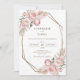 Celebre sua história de amor com este convite romântico e elegante para casamento floral com flores cor-de-água rosa delicadas, sotaques de grama pampas macios e um quadro de ouro. Perfeito para casamentos modernos, casamentos bélicos, casamentos rústicos ou casamentos cor-de-rosa elegantes. Este design adiciona um toque de beleza eterno ao seu dia especial.