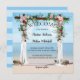 Um convite romântico para o casamento, com um arco com véus e rosas na praia. Na parte de trás você pode encontrar dois designs striped diferentes e você pode escolher qual você mais gosta. Ou: copie e cole a imagem frontal no verso ou escolha sua própria foto ou uma cor de fundo.