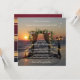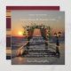 Um convite de casamento encantador com véus e rosas na praia. Um pôr do sol e uma lanterna vintage com luzes de cordas aumentam a atmosfera romântica. No verso você pode encontrar um fundo pintado artístico com listras douradas.