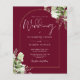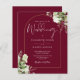 Esta elegante vegetação botânica do orçamento deixa convite para casamento pode ser personalizado com suas informações em tipografia quic com suas iniciais monográficas no verso em um fundo burgundy. Projetado por Thisnotme©
