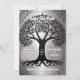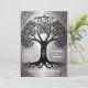 Convite de casamento da árvore da vida com detalhes de prata e preto.