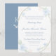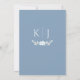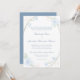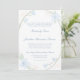 Convite principal para a coleção Blue Floral Wreath. O design evoca uma sensação de primavera e novos começos com suas matizes pastéis. A aquarela azul floresce, as videiras e as folhas enquadram o texto em um fundo branco. Pelo contrário, a parte de trás do cartão é um azul profundo e empoeirado. Experimente este design nas elegantes opções de papel, como linho ou pérola. O papel macio vai melhorar a delicadeza das flores. Perfeito para um casamento no jardim ou na primavera.