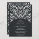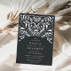 Convites de casamento vintage elegantes em ornamentado de recursos extrapatrimoniais ricos em carvão, detalhando que evoca o aspecto do papel cortado em um estilo papel picado.