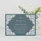 Convites de casamentos vintage elegantes em verde florestal rico apresentam uma borda deco ornamentosamente detalhada que evoca o aspecto do papel cortado no estilo papel picado.