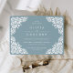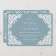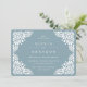 Os convites para casamentos vintage elegantes em azul de ardósia apresentam uma borda deco ornamentosamente detalhada que evoca a aparência do papel cortado em um estilo papel picado.
