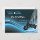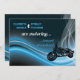 Convite de casamento para motociclistas azuis, com uma motocicleta em azul-gradiente, branco, fundo preto e malha branca. Alguns elementos são cortesia de Clipartandfonts.com.