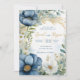 A elegante papoila azul floral e branca, verde e erva seca de penas constituem este belo convite para o casamento.