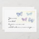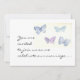 Um convite informal para um casamento de verão com um design de borboletas azul pintadas à mão e o reverso do cartão deixou vazio para você adicionar seus detalhes. Texto personalizável e adequado para criar outros artigos de papelaria, como Solicitações de Garota Flor.