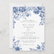 Convite de Casamento de Borda Floral Azul