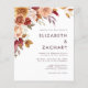 Este convite de casamento moderno apresenta um arranjo floral de aquarela em ricos tons de ferrugem, terracota e burgundy no outono. Edite o texto do sans serif burgundy com os nomes dos casais e os detalhes do casamento em um fundo branco. O lado inverso é uma sombra de burgundy sólida. NOTA: os envelopes não são incluídos automaticamente nestes convites de orçamento, portanto lembre-se de escolher a opção "envelopes brancos"!
