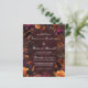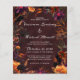 Vermelho escuro e sangrento fornece o fundo luxuoso para este convite para Casamentos outono. Rústico, flores silvestres de Boho fornecem a estrutura em laranja verde, preto e cobre profundo. Flores roxas e cor-de-rosa acendem um pouco. Perfeito para o outono tardio ou o casamento do Halloween. O texto branco tem um pouco de vibração sobre ele.