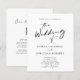 Orçamento Tudo em um Código QR RSVP Trendy Modern Black Calliographic Convite de Casamento... Nosso convite de casamento preto-e-branco minimalista da moda "frente e trás" apresenta um roteiro de caligrafia moderno combinado com texto de serif e sans serif para um convite de casamento simples e chic. A parte de trás do nosso convite minimalista também mostra o seu código QR do site de casamento, assim como o próprio URL do site, permitindo que os seus convidados RSVP online sejam facilmente consultados e visualizem todos os detalhes normalmente enviados num pacote de casamento. Este convite de casamento ao estilo moderno foi concebido para ser simultaneamente respeitador da moda e do orçamento... bem como para poupar tempo. O exemplo de gráfico de código QR e todo texto de exemplo (além dos elementos de caligrafia gráfica) pode ser facilmente revisado com suas próprias informações sobre o modelo de personalização.