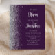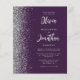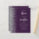 A borda esquerda deste elegante convite de casamento moderno apresenta uma borda falsa de prata. O texto personalizável combina o script de cinza prateada pálida e as fontes sans serif em um fundo roxo escuro. O verso apresenta um design púrpura e prateado.