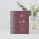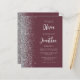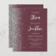 A borda esquerda deste elegante convite de casamento moderno apresenta uma borda falsa de prata. O texto personalizável combina um script de cinza prateada pálida e fontes sans serif em um fundo vermelho escuro e vermelho. O lado inverso apresenta uma burgundy e uma design prateada correspondentes.