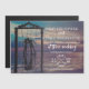 Um convite de casamento impresso num cartão magnético. Use sua própria foto e adicione os detalhes para o seu casamento. Há um gradiente roxo transparente no design, então isto funciona melhor com uma foto que vai bem com roxo, e com um fundo mais escuro no lado direito.