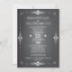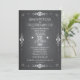 O convite de casamento popular ao estilo do quadro de comunicações é esboçado pela borda de rolagem e tem um efeito de giz. No verso, uma ilustração original de um jarro de pedreira com flores brancas de hydrangea e um coração personalizado com as iniciais da noiva e do noivo. A tipografia quêmica dá ao convite um olhar casualmente elegante. Esta versão econômica inclui informações de RSVP no convite. Os itens de coordenação também estão disponíveis.