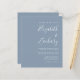 Economize o custo de imprimir e enviar cartões RSVP separados com este convite de casamento simples e moderno, com todos os recursos disponíveis, apresentando texto branco sobre um fundo azul empoeirado. Adicione os nomes da noiva e do noivo na caligrafia de escrita manual do na moda e os detalhes na fonte sans serif. O verso fornece espaço para detalhes do casamento, junto com um código QR que os convidados podem digitalizar para visitar seu site e RSVP, em um fundo azul empoeirado.