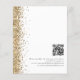 Convite De Casamento De Código QR Branco De Faux Glitter Dourado De Orçamento. NOTA Há duas opções de papel a escolher para este tamanho (4,5 x 5,6") na faixa de Orçamento. Para este produto, eu recomendaria muito o semibrilho, que é um estoque de cartão de 110 gsm, semelhante em espessura a um cartão postal. A opção Satin é um papel muito mais fino, 80gsm. O padrão é definido como semirbrilho. As cores e o tipo da fonte podem ser alterados através do menu de edição. Você também pode alterar as cores de fundo em ambos os lados, se desejar. Seu código QR será gerado automaticamente para substituir a amostra mostrada quando você substituir o URL de amostra pelo seu próprio.