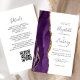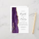 A borda esquerda deste elegante convite de casamento moderno apresenta uma cor d'água roxa, borda agitada, aparada com falso brilho dourado. O texto personalizável combina manuscrito, copperplate e fontes itálicas em cinzas de carvão em um fundo branco. Adicione mais detalhes no verso, juntamente com um código QR para ajudar seus convidados a visitar seu site de casamento.