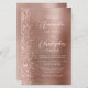 A borda esquerda deste elegante convite de casamento moderno apresenta uma borda falsa de ouro rosa. O texto personalizável combina manuscrito branco, fontes em copperplate e itálico em um fundo de metal esfregado em rosa dourado. O verso fornece espaço para detalhes de casamento em um fundo de metal escovado em ouro rosa, junto com um código QR que os convidados podem digitalizar para visitar seu site e RSVP, o que economiza o custo de impressão e envio de placas RSVP separadas.