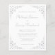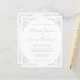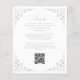 Este elegante convite de casamento formal inspirado na vintage apresenta o texto em roteiro de cinza prateada e fontes serif, enquadrado por um delicado motif de prata de vintage. O verso oferece espaço para detalhes do casamento, juntamente com um código QR que os convidados podem digitalizar para visitar seu site e RSVP, o que economiza o custo de impressão e envio de cartões RSVP separados.